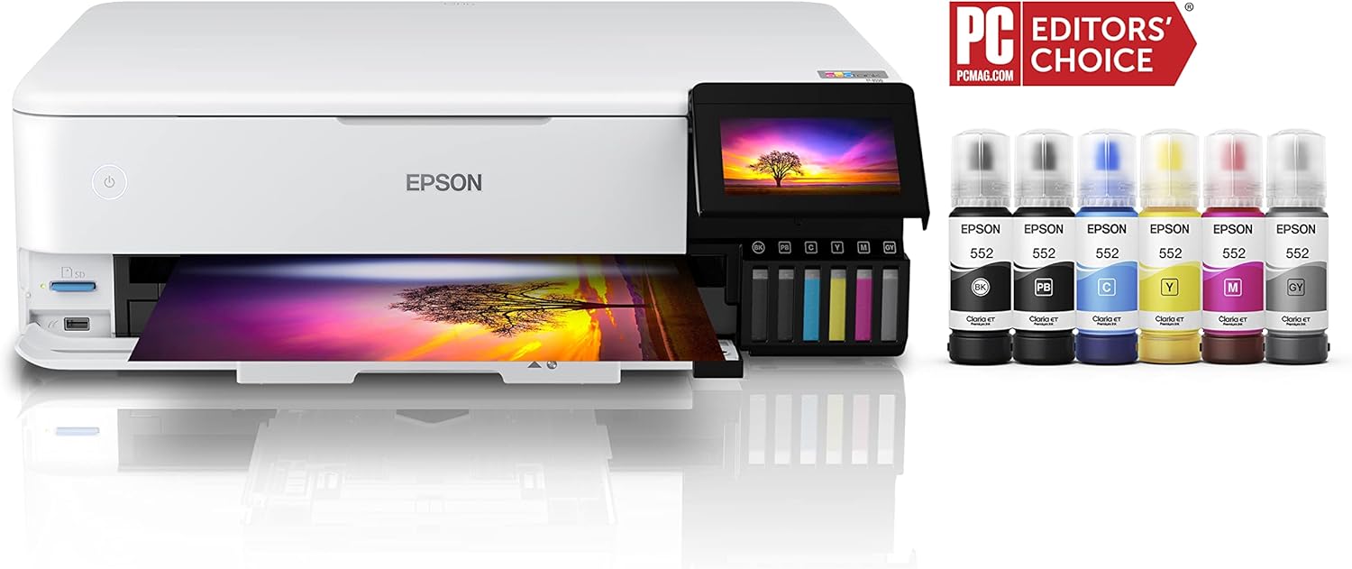 The Epson EcoTank Photo ET-8550 is the ultimate creative tool for those who demand professional-quality prints without the high overhead of traditional ink cartridges. This versatile wide-format supertank printer utilizes a unique 6-color ink set to produce exceptionally detailed photos and sharp documents. Whether you are printing large-scale portfolios, promotional materials, or everyday business reports, the ET-8550 provides the performance and economy to handle it all.